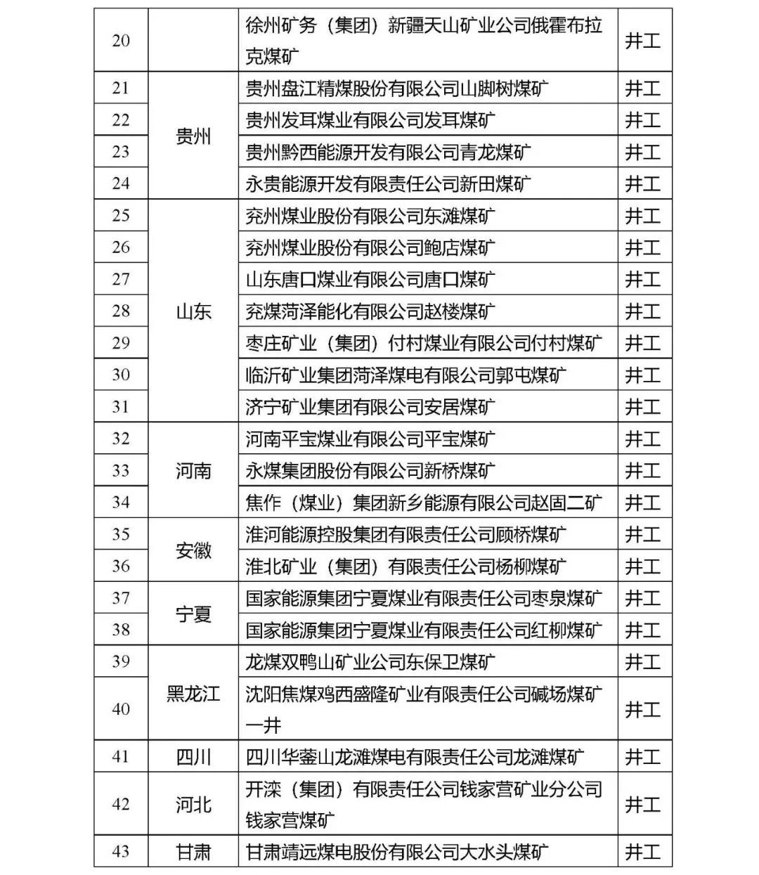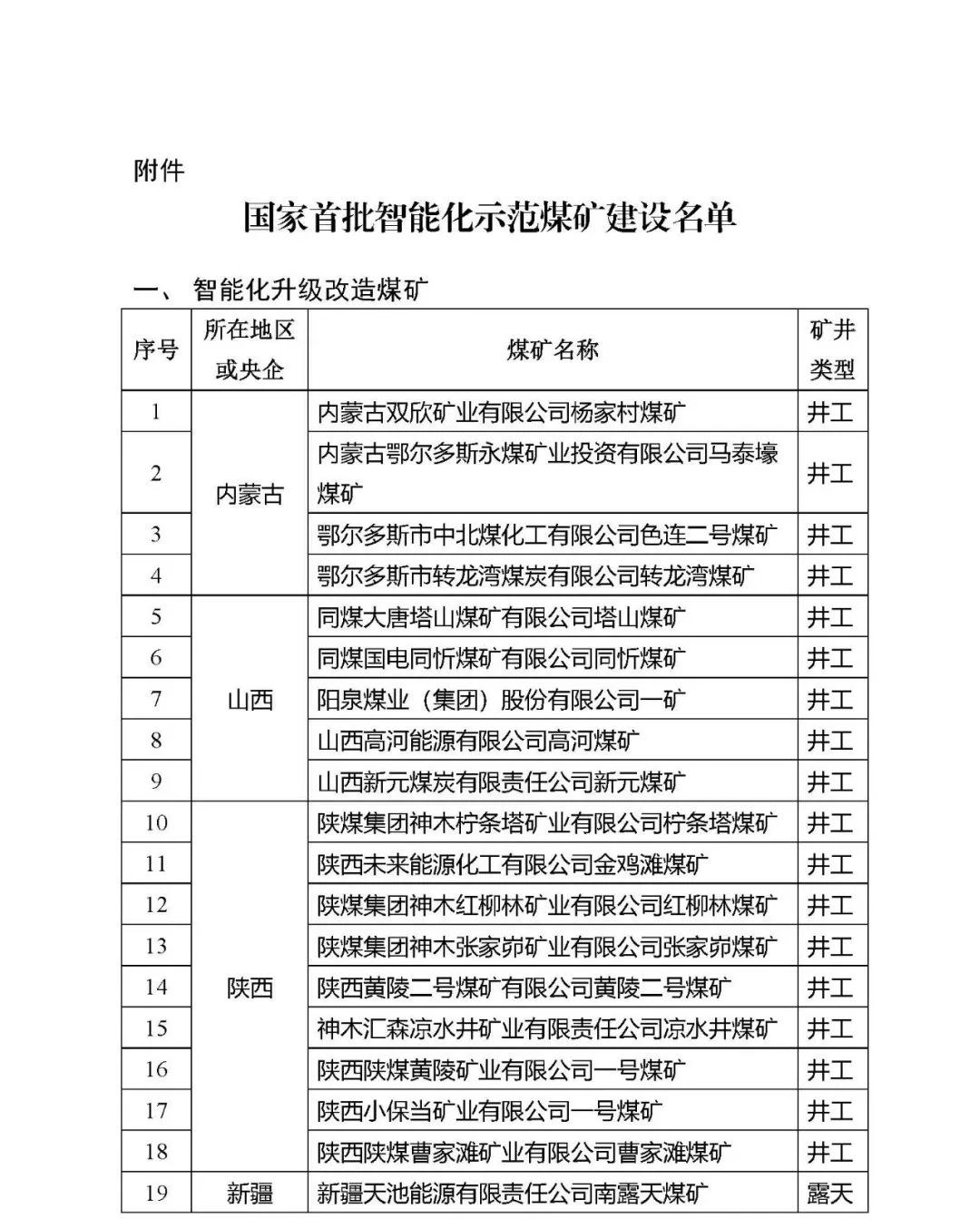 附件:国家首批智能化示范煤矿建设名单