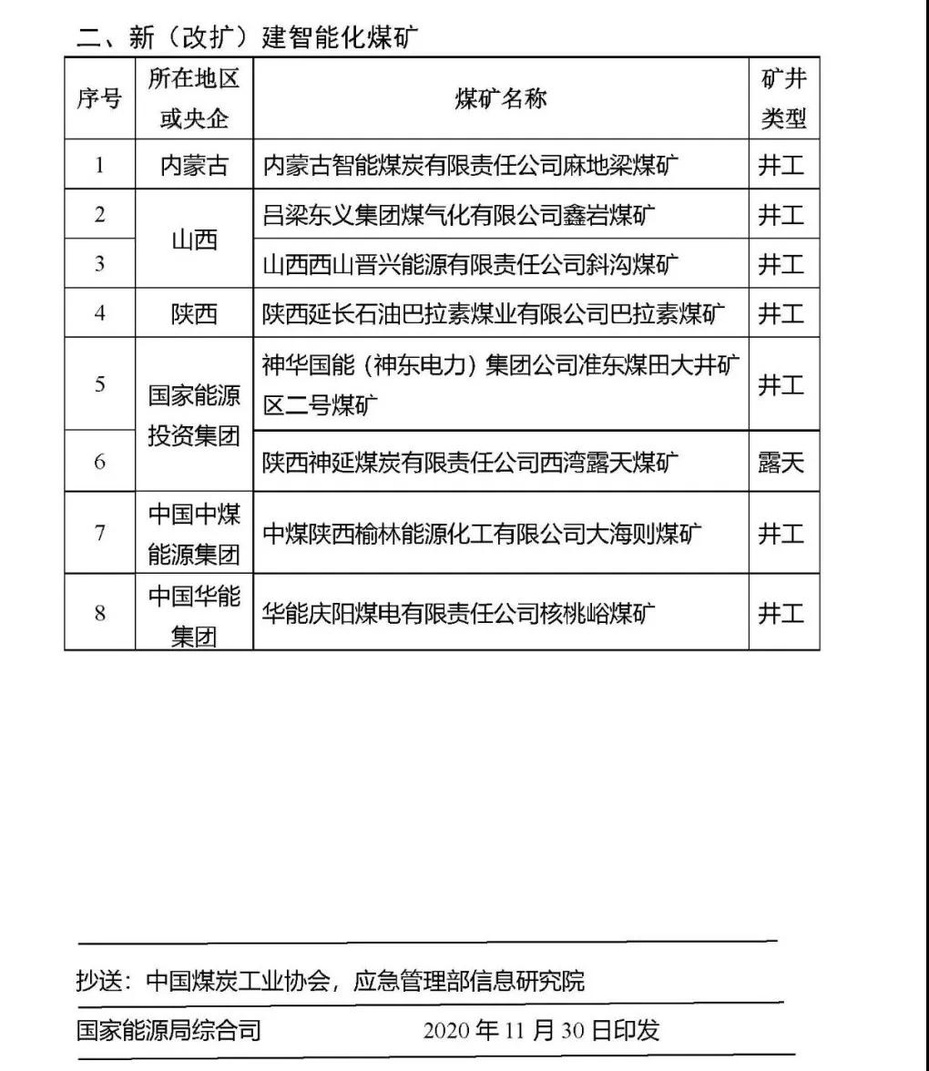 为深入贯彻落实习近平总书记“四个革命、一个合作”能源安全新战略,加快推进煤炭行业供给侧结构性改革,推动智能化技术与煤炭产业融合发展,提升煤矿智能化和本质安全水平,从根本上消除事故隐患,按照《关于加快煤矿智能化发展的指导意见》(发改能源〔2020〕283号)要求,国家能源局、国家煤矿安全监察局审核确定内蒙古双欣矿业有限公司杨家村煤矿等71处煤矿,作为国家首批智能化示范建设煤矿(名单详见附件),现向社会公布。有关事项通知如下: