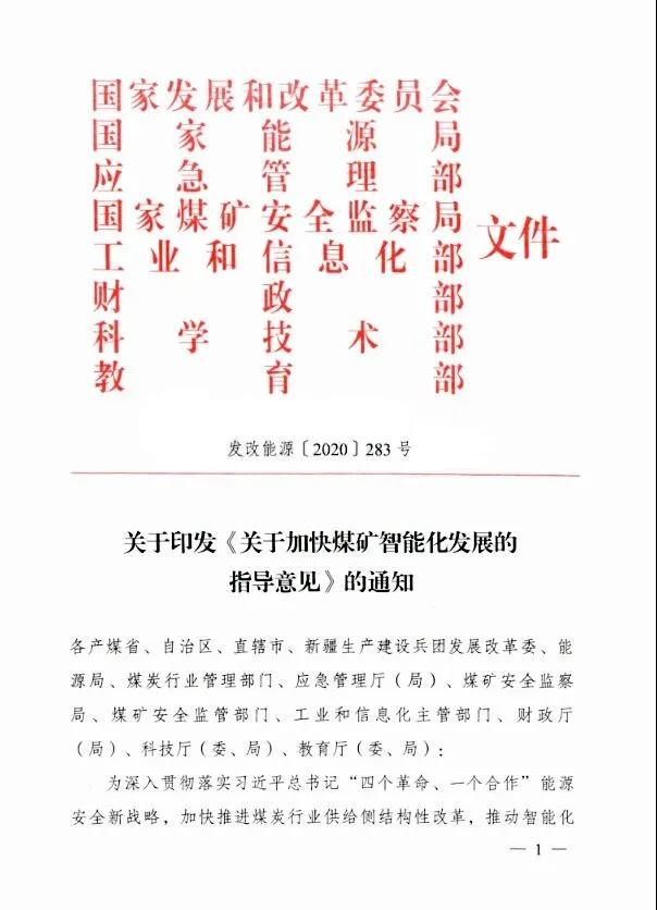 2020年2月25日,国家发改委、国家能源局等八部门联合印发了《关于加快煤矿智能化发展的指导意见》,煤矿智能化建设提速。指导意见提出,到2021年,建成多种类型、不同模式的智能化示范煤矿;到2025年,大型煤矿和灾害严重煤矿基本实现智能化;到2035年,各类煤矿基本实现智能化,构建多产业链、多系统集成的煤矿智能化系统,建成智能感知、智能决策、自动执行的煤矿智能化体系。