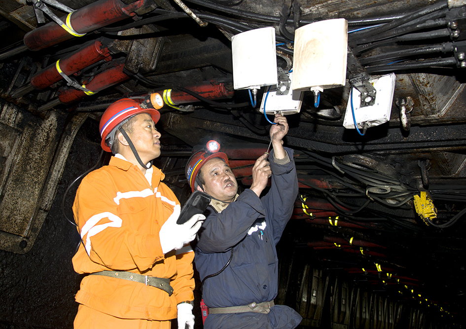 工程技术人员在井下综采工作面检测5G基站应用 孟明 摄