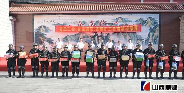 6月18日,山西省能源局一级巡视员胡万升、山西省煤矿工会副主席王建国到山煤国际凌志达煤业主井口开展夏季“送清凉”慰问活动。山西焦煤工会、山煤国际相关领导一同参加慰问活动。