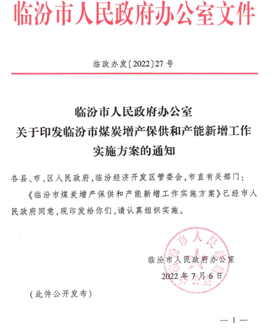 附件:临汾市人民政府办公室关于印发临汾市煤炭增产保供和产能新增工作实施方案的通知.pdf