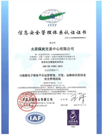 日前,太原煤炭交易中心有限公司(以下简称“交易中心”)通过了信息安全管理体系认证权威机构——华夏认证中心有限公司的监督审核,取得了由CNCA(中国国家认证认可监督管理委员会)和UKAS(英国皇家认可委员会)共同颁布的2022年度ISO/IEC 27001:2013信息安全管理体系认证证书。这是交易中心连续十年通过ISO27001认证,标志着信息安全管理水平再上新台阶!