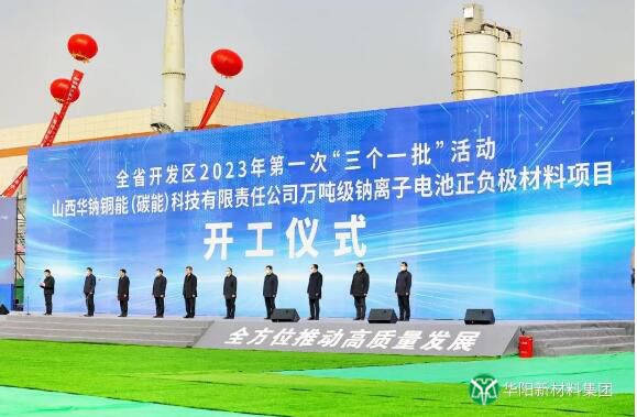 “开门红”促“全年红”。2月22日,全省开发区2023年第一次“三个一批”活动举行,华阳集团万吨级钠离子电池正负极材料项目亮相我省“三个一批”活动并在山西转型综合改革示范区潇河产业园区开工奠基,省委书记蓝佛安等省领导出席仪式。项目开工是华阳股份与中科海钠继签署合作框架协议后项目建设进程中迈出的又一实质性步伐,是华阳集团践行“双碳”目标,落实省委省政府决策部署,推动高质量发展,瞄准新能源新材料领域,打通钠离子电池全产业链协同发展的生动实践。