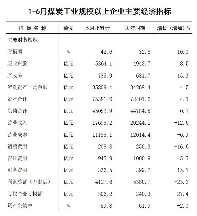 2023上半年煤炭工业规模以上企业主要经济指标发布