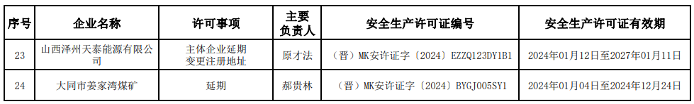 山西24座煤矿获批!名单公布!发布时间:2024-01-08 来源:山西省应急管理厅 访问量:次