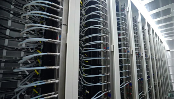 山西大同秦淮数据灵丘基地冷板液冷服务器机柜。图片来源:灵丘县宣传部