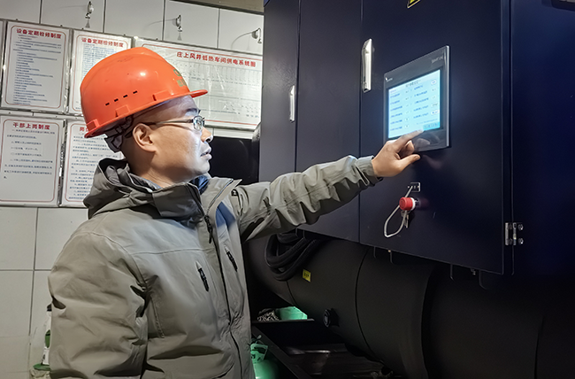 此外,该项目创造性整合既有资源与前沿技术,为四号风井打造了一套智慧供热网络。在充分利用原有配电设施、水源热泵机组及井口房结构的基础上,新增1台低温乏风热泵机组,总装机容量达8.7MW,供热能力较改造前提升128%。配套自控系统实时监测井口温度、机组负荷及环境参数,动态优化热泵启停策略,确保全气候条件下井筒温度始终保持在2℃以上。值得一提的是,该矿利用原有建筑供暖的末端设备和管路,新增空压机余热回收设备,同步建成空压机余热回收子系统,实现压缩空气废热为540㎡办公及住宿区域供暖,初步形成“乏风+空压机余热”双源互补的低碳供热体系。