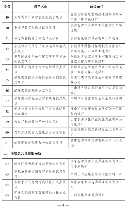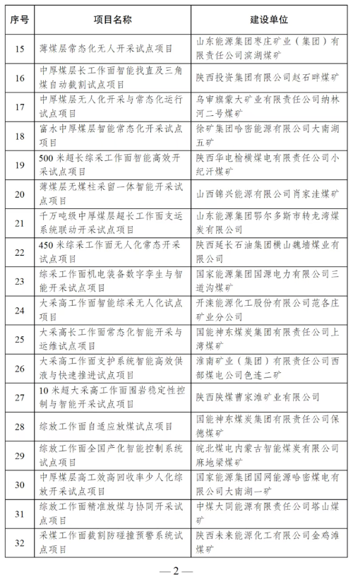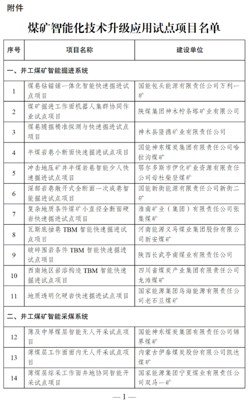 附件:煤矿智能化技术升级应用试点项目名单